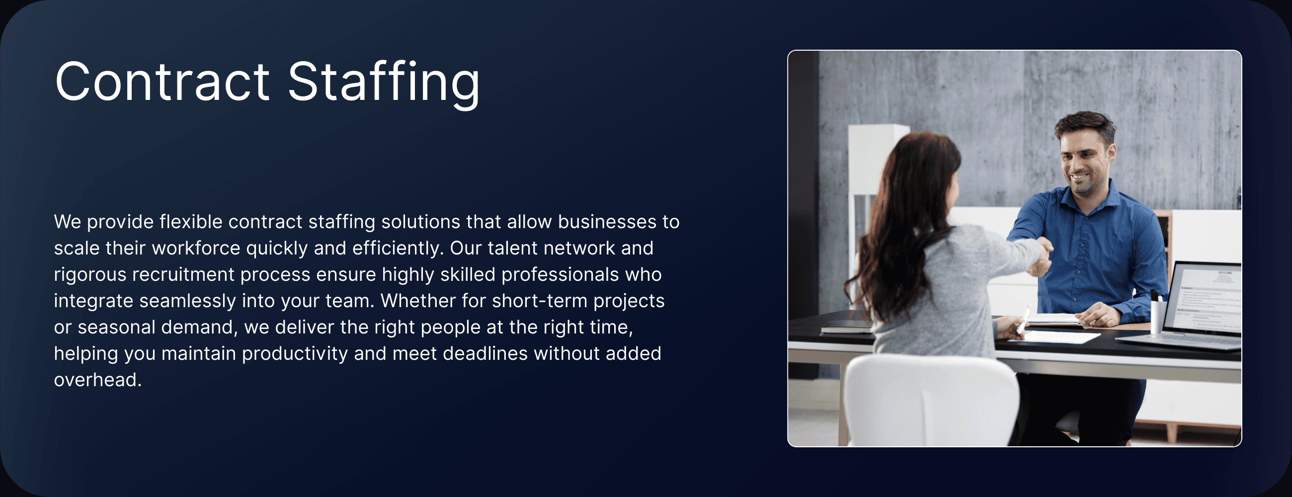 By offering strategic human resource management, we provide our clients with a reliable, adaptable, and mission-ready workforce that directly contributes to operational success.